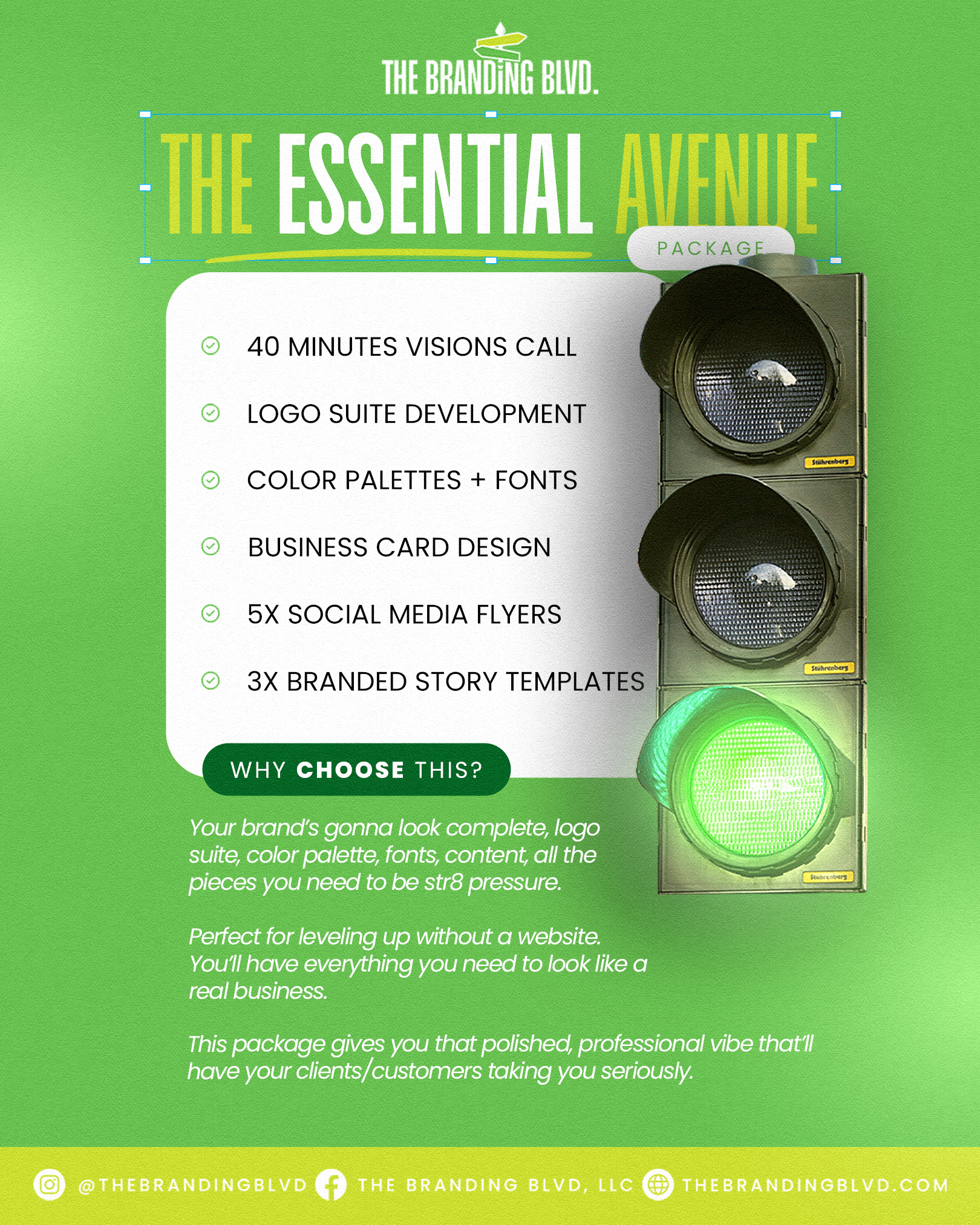 You been putting in work, but your brand? Yeah... it’s not giving what it’s supposed to give. This package gets your whole look together so when you show up, people know you mean business. No more looking like a side hustle, it’s time your brand matched your moves.